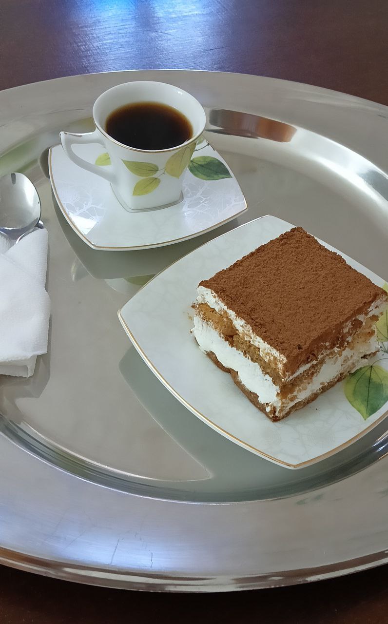 Just coffee, a piece of cake, and a quiet moment to start writing.